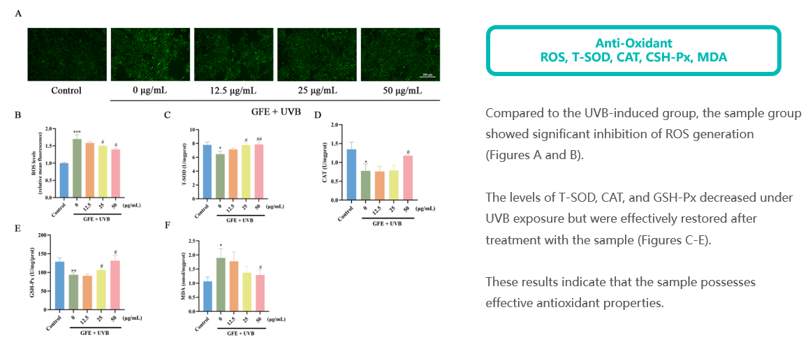 Induction of oxidation stress model in HaCaT by UVB | Free radicals including ROS, SOD | |