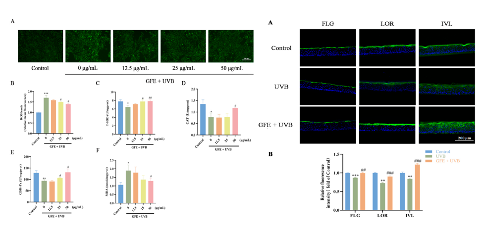 An integrated assessment system was established by combining the antioxidant enzyme activities (T-SOD/CAT/GSH-Px), lipid peroxidation marker (MDA) quantification, and 3D epidermal model barrier protein (FLG/LOR/IVL) immunofluorescence imaging. This comprehensive system enables quantitative evaluation of oxidative stress inflammatory response barrier repair dynamics across cellular and tissue hierarchies.