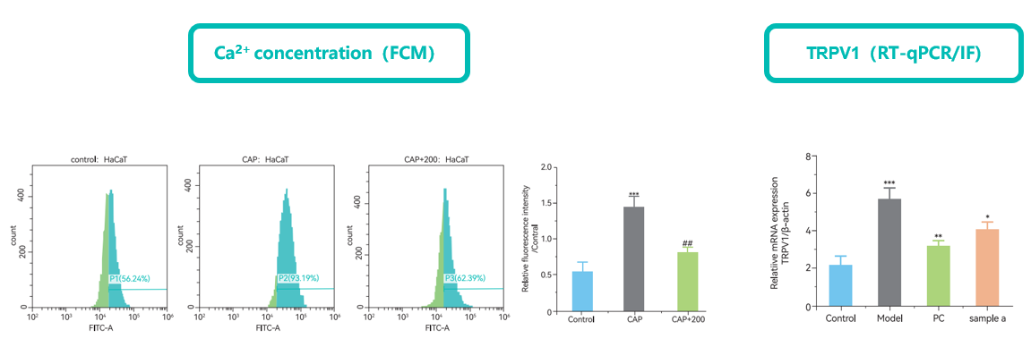 CAP stimulated model in HaCaT cells | Calcium concentration, expression of TRPV1 | |