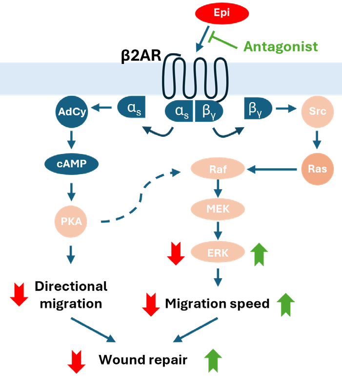 圖1 腎上腺素通過β2-AR通路調(diào)節(jié)角質(zhì)形成細(xì)胞的傷口修復(fù)(來源:文獻(xiàn)1)