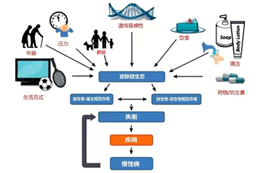 人體皮膚是細(xì)菌、真菌、病毒、古細(xì)菌和小型節(jié)肢動(dòng)物等大約40萬(wàn)億微生物的家園。皮膚微生態(tài)系統(tǒng)通過(guò)維持其物種組成的動(dòng)態(tài)平衡,能夠有效阻擋病原體侵襲并調(diào)控宿主的免疫反應(yīng),幫助構(gòu)建皮膚固有免疫和適應(yīng)性免疫屏障。這對(duì)宿主皮膚健康的維持極為關(guān)鍵。一旦微生物群落的平衡被打破,就可能導(dǎo)致病原體過(guò)度繁殖和有益共生微生物減少,加劇宿主炎癥反應(yīng),使得如痤瘡、銀屑病、特應(yīng)性皮炎(濕疹)和脂溢性皮炎等慢性炎癥性疾病變得更加難以治愈。