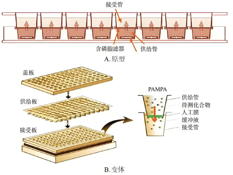 PAMPA是一種用于評估藥物透膜能力的體外實驗方法。該方法通過使用人工合成的膜來模擬生物膜的屏障功能,主要用于快速篩選藥物分子的透膜性。在PAMPA法中,通常使用含有磷脂組成的人工膜,該膜被夾在兩個相鄰的溶液室之間,模擬如腸道、皮膚中藥物的被動擴散過程,化妝品透皮吸收中應用較少。