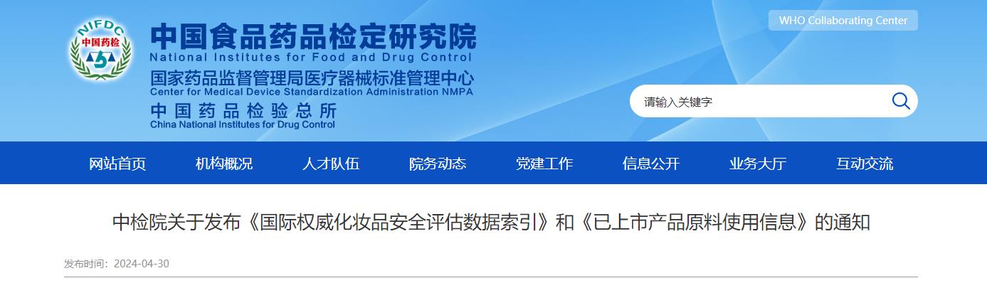 為引導化妝品行業提升化妝品安全評估能力和水平,規范開展化妝品安全評估工作,推進化妝品安全評估制度有序實施,依據《化妝品監督管理條例》《化妝品安全評估技術導則(2021年版)》和《優化化妝品安全評估管理若干措施》等相關法規和規范性文件要求,中檢院制定了《國際權威化妝品安全評估數據索引》和《已上市產品原料使用信息》(詳見附件),現予發布。
